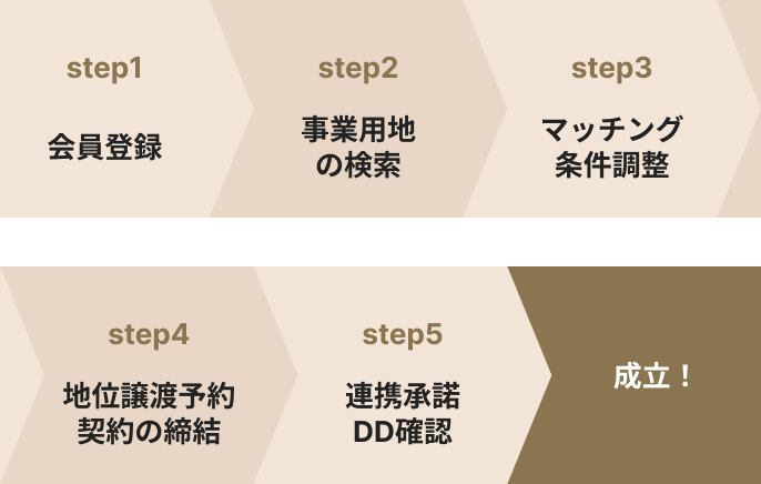 買主側は事業用地選定から購入まで、売主側は掲載から売却まで、プロセス全体をサポート、交渉や手続きもスムーズに進められます。